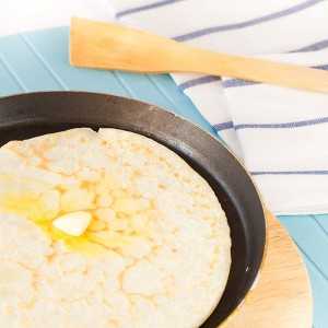5. Сковороду разогреть, немного смазать маслом. В середину налить тесто, сковороду покрутить, чтобы тесто равномерно распределилось. Когда низ блина зазолотится, его надо перевернуть.