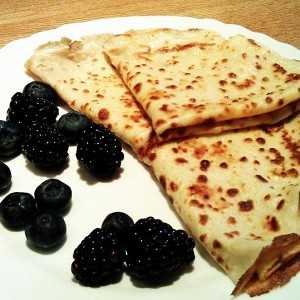 5. Выпекайте тонкие блины, наливая по 1 столовой ложке теста и распределяя по поверхности, до готовности и золотистого цвета с обеих сторон.