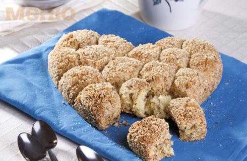 3.Брать тесто ложкой размером с грецкий орех и помещать в чашу с измельченными орехами. Затем положить в смазанную маслом форму для выпечки. Все шары расположить на расстоянии 1 см друг от друга.