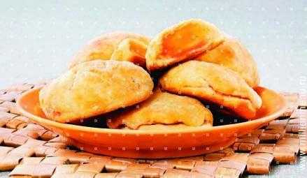 Охлажденное тесто раскатать толщиной 3 мм и вырезать кружочки. На один кружочек теста положить конфетку, накрыть сверху вторым кружком и защипать наподобие пирожков.