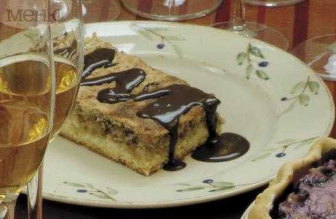3. Печь нагреть до 200 ° С. Большую прямоугольную форму для выпечки покрыть маслом. Распределить тесто мокрыми руками на дне лотка. На нем распределить начинку. Выпекать в духовке 25 минут. В это время белки взбить с остальным сахаром, добавить миндаль. Этой смесью покрыть пирог. И снова поставить выпекать в течение 20 мин в нижней части печи.