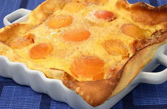 Форму смазать маслом и выложить на дно формы потомленные абрикосы, и залить приготовленной массой.