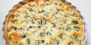 Выпекаем примерно полчаса при 180°C (регулируйте в зависимости от вашей духовки - когда пирог зазолотится и запахнет сыром, он готов).