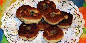 Готовое тесто разделать на порции по 40-50 г, накрыть их пищевой плёнкой и дать расстояться 5-10 минут. Затем каждую порцию раскатать в лепёшки диаметром около 10 сантиметров. В середину каждой лепёшки положить по столовой ложке начинки и примять.