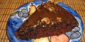 9. Добавляем орехи и поливаем получившейся помадкой пирог.