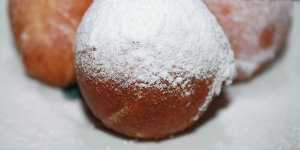 Готовые пончики перекладываем на сито и даем стечь с них лишнему жиру. После этого выкладываем их на тарелку и присыпаем сахарной пудрой.