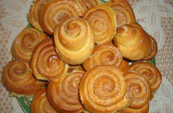 В стакан воды налейте 100 г воды и добавьте в нее 2 ст. ложки сахара. Затем этой помадкой смажьте сверху булочки и отправьте еще на 2-3 минуты в духовку. Это придаст булочкам блеск и они будут выглядеть еще аппетитнее. Также их можно посыпать сахарной пудрой. Приятного всем чаепития!