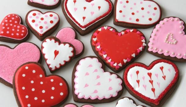 Разбиваем шоколад на кусочки, добавляем молоко. Растворяем на водяной бане, постоянно помешивая для получения гладкой консистенции. Добавьте немного красной краски и смешайте так, чтобы масса была равномерно красной. Украшаем сердца глазурью.