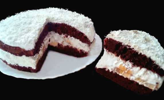 Домашний бисквитный торт, это настоящее объедение. Он понравится не только детям, но и взрослым. Предлагаем вам простой рецепт шоколадного бисквита, с кокосовым кремом и бананами.