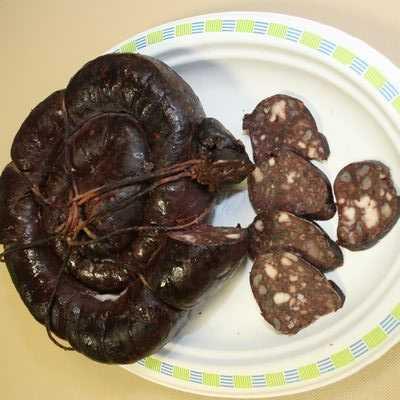 Начинять тонкие свиные кишки (предварительно обработанные и промытые) сразу же после смешивания всех ингредиентов.
