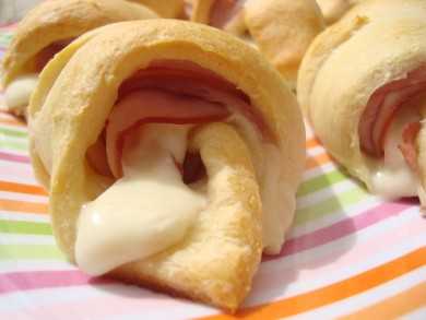 Нарезаем кусочки сыра по количеству долек теста и каждый кусочек сыра заворачиваем в тоненькую нарезку бекона.