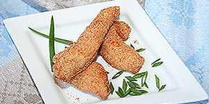 Опять надуть и закрутить. Хорошо потрясти, чтобы панировка распределилась по куриным палочкам равномерно.