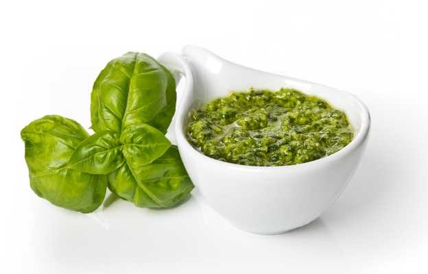 Пожарить кедровые орехи на сковороде без масла, пока они не начнут пахнуть. Вымойте и высушите базилик. Очистите чеснок. Все ингредиенты смешать в в блендере, а затем добавить струйкой оливковое масло. Соус приправьте солью и храните его в холодильнике. Это классический итальянский соус подходит для пасты, салатов или в качестве приправы для тоста.