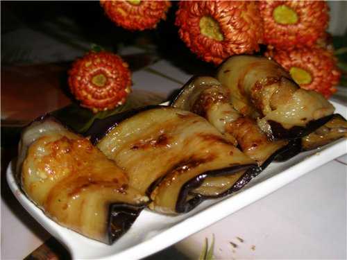 Смесь закипятила, переложила баклажаны и прогрела на небольшом огне 10 минут. При необходимости подсолить. Кушать охлаждёнными. Можно из сковороды. А можно переложить в форму и в холодильник настаиваться. При подаче порезать душистые веточки мяты и посыпать на блюдо.