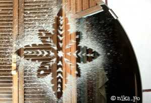 Невероятно простой и красивый способ -ваши окна или зеркало станет сказочным! Вам понадобятся: вырезанная из бумаги снежинка; белая зубная паста; старая щетка.