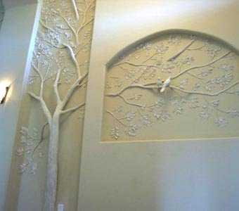 Очень интересную фактуру имеют также стены, на которые шпаклевка нанесена руками (в перчатках). Тут уж пусть поработает ваша фантазия: руками можно создать умопомрачительные узоры, а также оставить отпечатки - для потомков.