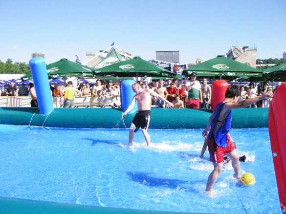 Самый обычный футбол может превратиться в азартное развлечение. Сейчас можно приобрести или арендовать мокрый футбол в воде. Поле можно установить в любом месте: на берегу озера, на пляже, в парке. Это прекрасный вариант для корпоративного турнира. Игра проходит на поле, наполненном водой, поэтому вызовет массу радостных эмоций и подарит много незабываемых моментов.