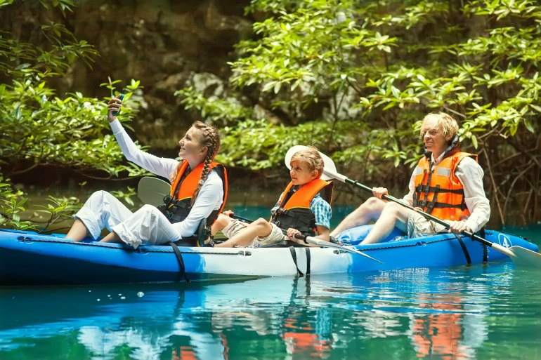 Каякинг — вид активного водного туризма, в котором не требуется специальная спортивная подготовка, физическая сила и богатырское здоровье. Заниматься греблей можно с любым телосложением, в любом возрасте и в любой компании. Поэтому такое занятие идеально подходит для семейного досуга, смены обстановки и сплочения с близкими.