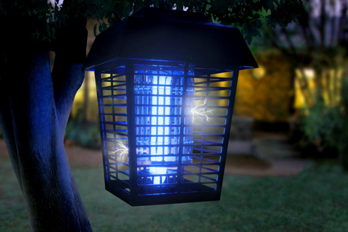 Принцип работы: насекомые привлекаются ультрафиолетовым светом и уничтожаются, контактируя с электрической сеткой под напряжением.