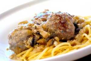 Отварить спагетти, выложить на тарелку, а сверху - тефтели и соус.