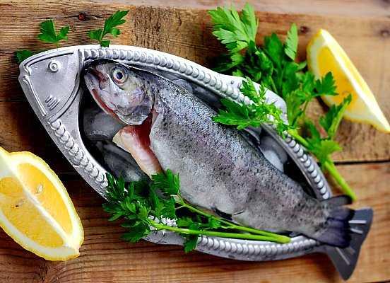 Ингредиенты на 4 порции: 4 почищеных форели, 2 лимона, соль и перец, мука, 200 г сливочного масла, 6 ст. л. нарезанной петрушки.
