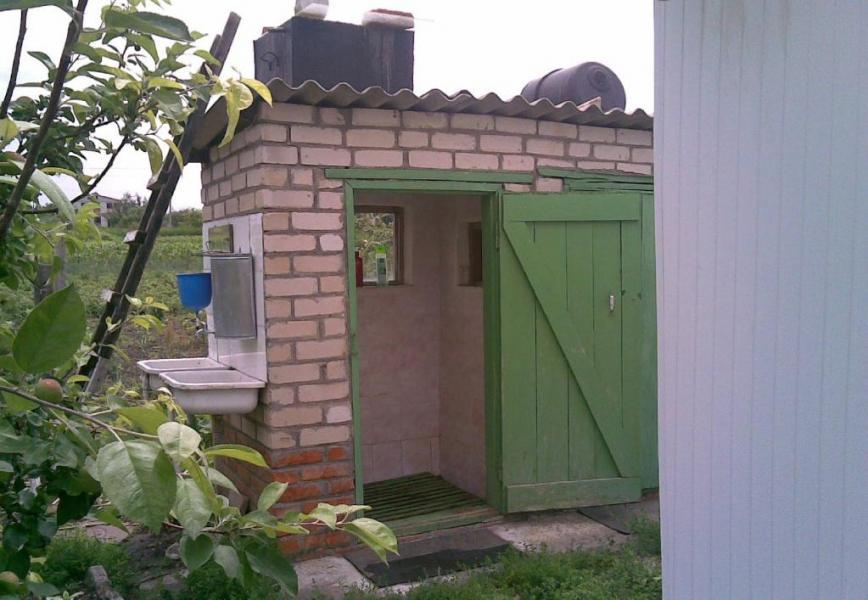 Строительство кирпичной кабины требует строительства фундамента. Для этого достаточно выкопать паз вокруг периметра будущей конструкции шириной 200 мм и глубиной 400 мм. Заполните корыто битвой кирпичей и залейте жидким бетоном, чтобы он просочился между ними. Через неделю после затвердевания бетона начните класть кирпич на цементный раствор. Не забудьте установить дверную коробку. Сама дверь может быть сделана из дерева.