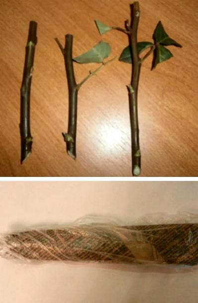 Для данного способа нам понадобятся мусорные пакеты, ненужные газеты, вода и сами черенки. Присутствие листьев на черенках – не обязательно. Берем черенок розы с 3-4 почками и делаем срезы с обеих сторон. Над верхней почкой срез делаем прямой, под нижней – косой. Но, в данном эксперименте существуют обязательные условия. Нижний (косой) срез должен идти по направлению к почке (см. фото). Все подготовленные черенки, полностью заворачиваем в хорошо пропитанную водой газету. Мокрый сверток помещаем в мусорный пакет и завязываем его. Создаем черенкам как бы парниковый эффект. Помещаем черенки в еще один пакет и просто закручиваем его. Таким способом, мы подготовили черенки к прорастанию. Мини-парнички с черенками отправляем в темное, прохладное место, примерно на месяц. Остается дождаться появления корешков. Но, помните, газета не должна пересыхать, она всегда должна быть влажной. После появления корневой системы, высаживать черенки необходимо в грунт, под банки, в полутеневые места, для дальнейшего, прочного укоренения. Также черенки можно распределить по цветочным горшкам, отправить на зимовку в подвал, а весной высадить в открытый грунт.
