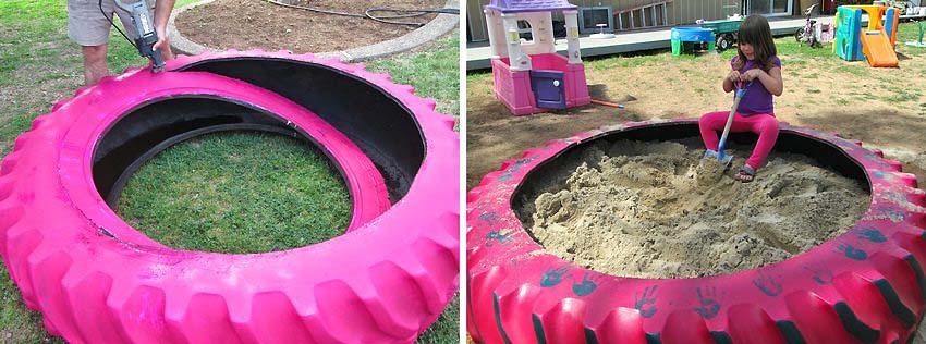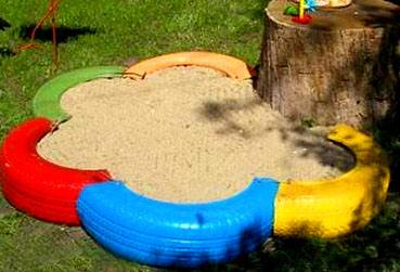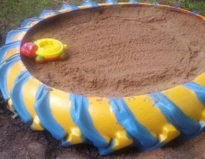 Жители крупных городов редко сталкиваются с проблемой организации отдыха для детей. В частном секторе родители должны самостоятельно организовать место для игр детям, и для того, чтобы каким-то образом сэкономить свой бюджет, они прибегают к различным уловкам. Деревянные песочницы выглядят красиво, но хорошая доска стоит дорого. Находчивые родители приспособили старые автомобильные шины для этих целей.