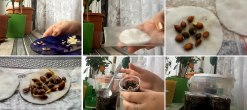 Через четыре дня смотрим на наши семена и видим, что два семечка уже проросли, мы снова обрызгиваем их водой, закрываем и отправляем на прежнее место. На восьмой день проверяем: у нас уже готовы семена для посадки с хорошими отростками. Этот метод тем и хорош, что сразу видно, какие семена дали отличные результаты роста, какие слабые и те, что не взошли совсем. Высаживать следует каждое семя в разные прозрачные пластиковые стаканчики (рюмки), так легче наблюдать за их ростом.