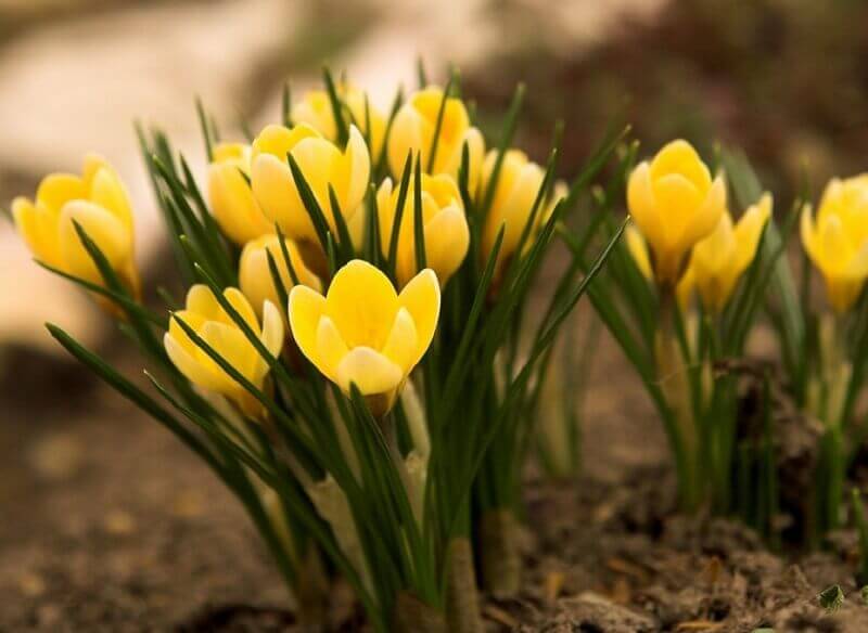- Крокусы - радуют пестрым, ярким окрасом и большим (относительно размеров самого растения) цветком. Отлично смотрятся в групповой посадке.