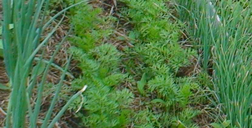 Лук, растущий с морковкой, отпугивает морковную муху; так же хорошо с ним растут томаты - они меньше болееют.