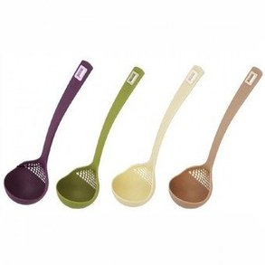 Черпак Bergner BG-1144 изготовлен из термостойкого пластика. Его особенность в перфорации сверху для слива жидкости. Его можно мыть в посудомойке. Также не портит поверхность кастрюль.
