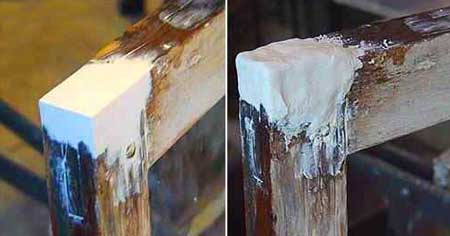 Шпаклёвка. Крупные щели и дыры заделывают стартовой шпаклёвкой. Впоследствии зашкуривают отделанную поверхность и наносят финишную шпаклёвку. После просыхания поверхность выравнивают наждачной бумагой №100.