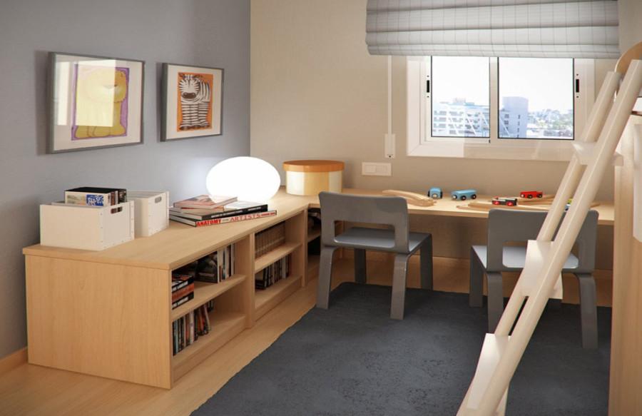 Это самый компромиссный вариант, особенно, если дети разнополые. Оно позволит и максимально почувствовать свою неповторимость и значимость, иметь свое спальное место, свой рабочий стол и свой собственный шкаф для одежды.