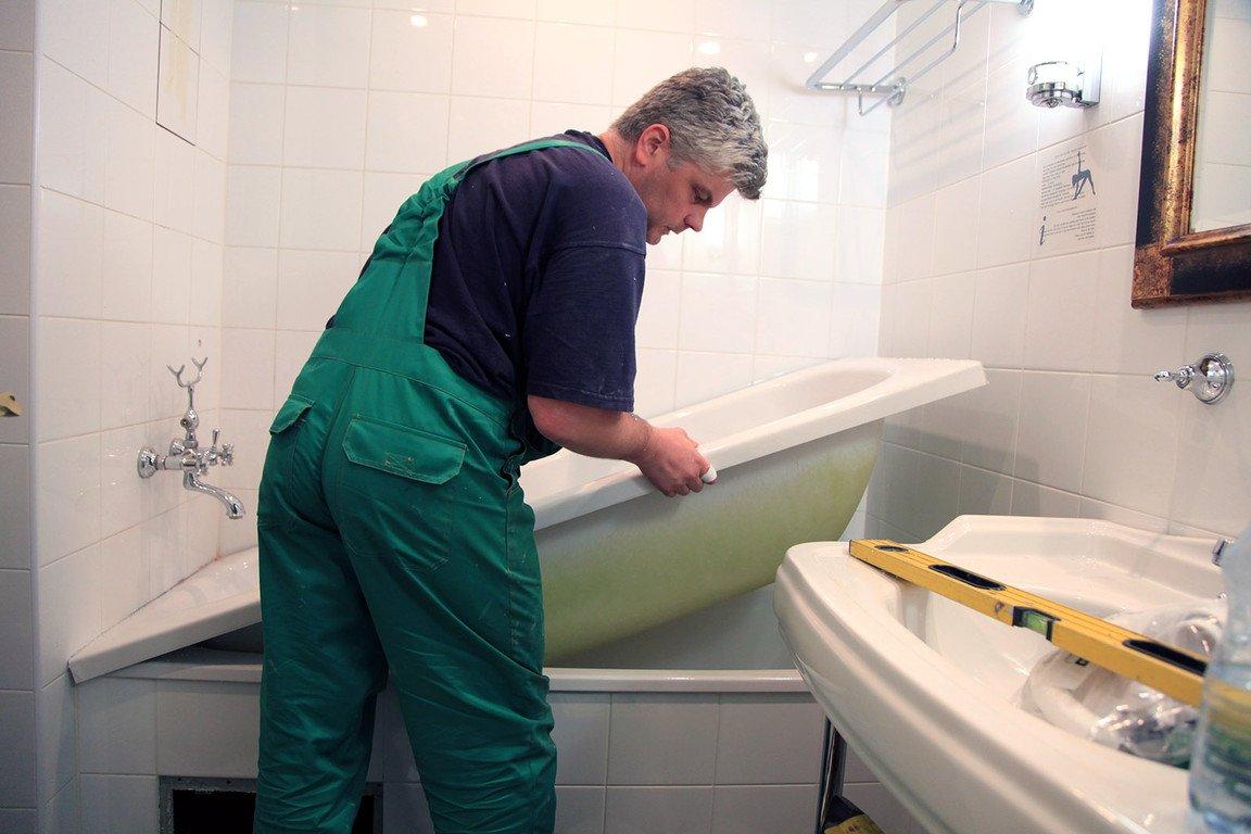 В начале вам нужно определить размер новой «вставки», измерив старую ванну. Внешний размер новой ванны лишь немного меньше, чем старая, и страх, что она будет очень маленькой, совершенно неоправдан. После удаления старого слива и установки нового, новая ванна фиксируется с помощью монтажной пены. Старая функционирует как поддержка. Слив в новой ванне теперь можно закрыть и наполнить водой. Сильно нагруженная ванна стабилизируется легче. В конце вырисовывается новое силиконовое соединение, и через два дня вы можете снова купаться.