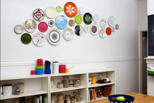 В магазинах декора и интерьера, данный материал можно выбрать на любую тематику. Тарелки должны быть разного размера, ярких цветов. Не размещайте в одну линию, подбирайте в соответствии с общим стилем помещения. Такое украшение подходит для кухни, столовой и гостиной комнаты.