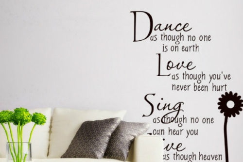 Очень оригинально выглядят надписи. Например, любимая цитата или красивое высказывание, можно выложить деревянными буквами, написать акриловыми красками через трафарет.
