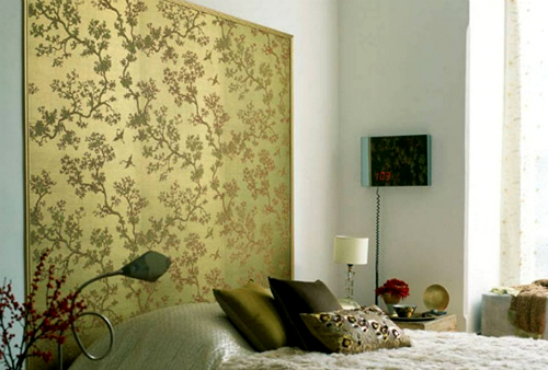 У вас остались яркие, красивые обои, а если нет, то можно купить и сделать панно из обоев. Для этого следует обои оформить в багет и повесить как картину. Смотрится замечательно.