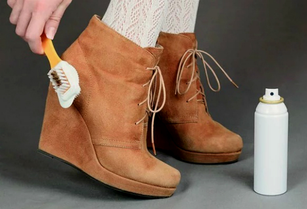 После любой очистки, когда обувь полностью высохнет, необходимо ее обработать специальным водоотталкивающим средством для замши. Его можно приобрести в любом обувном магазине. Чтобы замшевая обувь дольше служила, обработайте ее специальным средством и регулярно по инструкции освежайте покрытие. Средство выбирайте в соответствии с сезоном.