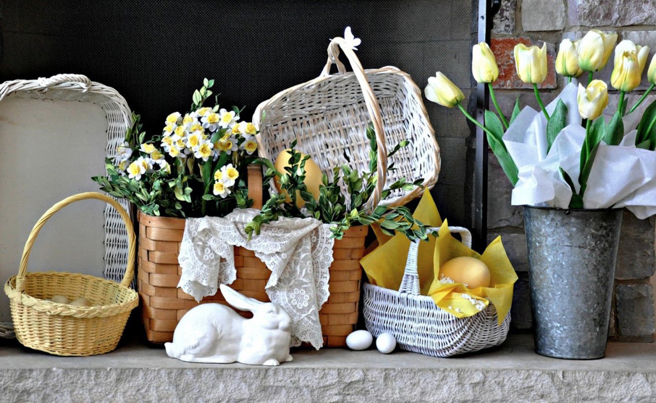 Не стоит забывать и об убранствах самого жилища к такому светлому празднику. В последнее время стали очень популярны пасхальные венки. Как правило, они изготавливаются из весенних веточек. Также для этого отлично подойдет солома или камыш, а еще верба. Элементы декорируются различными яркими лентами и крашеными яйцами, во время чего используется заранее раскрашенная цельная скорлупа. Такие самодельные гнёздышки смотрятся очень эффектно. На небольших венках можно использовать скорлупу перепелиных яиц, они не нуждаются в раскрашивании.