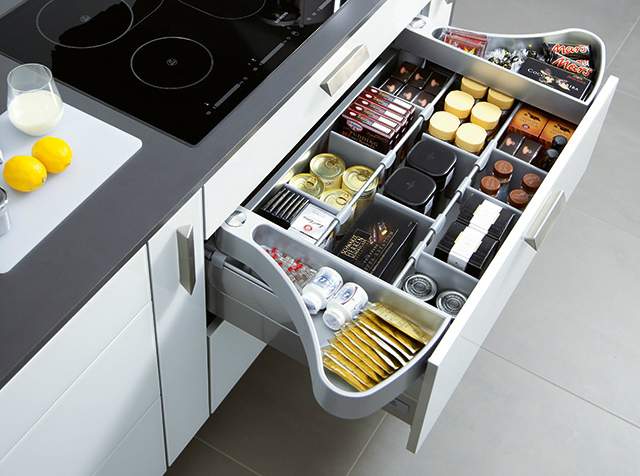 Ящики являются удобным решением для хранения мелкой кухонной утвари и продуктов. При выборе фурнитуры для ящиков учтите следующие моменты:
