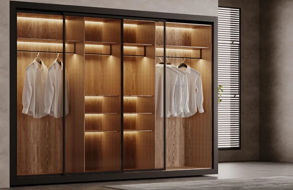 Функциональность. Определите, какие предметы будут храниться в шкафу, чтобы выбрать подходящее количество полок и внутренних отделений.