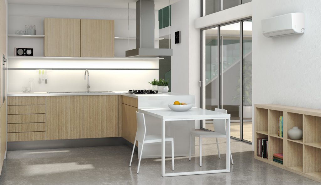 Кондиционер для кухни должен быть универсальным. Помимо снижения температуры, хорошо, если будут осушение воздуха, принудительная вентиляция, обогрев в межсезонье и фильтрация запахов.