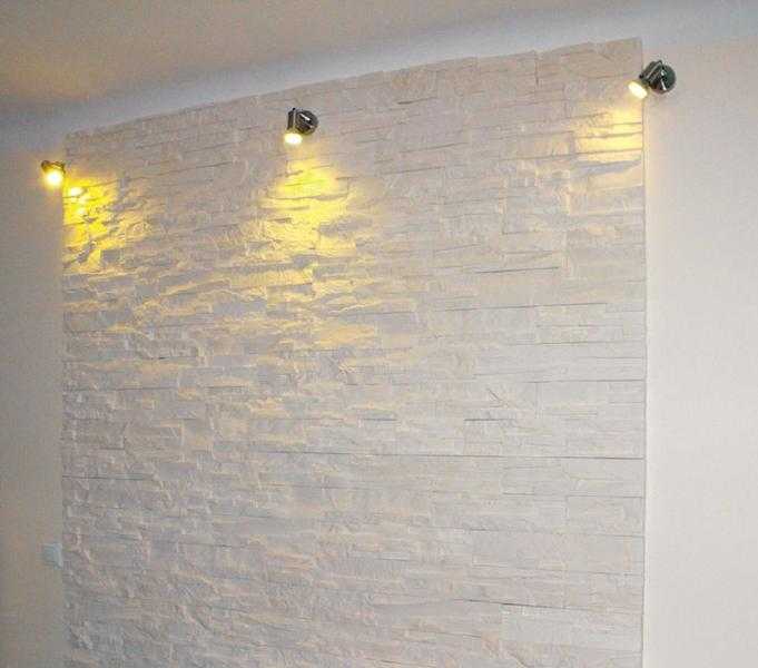 Декоративным камнем рекомендуется отделывать нишы с камнем в середине и светом со стороны.