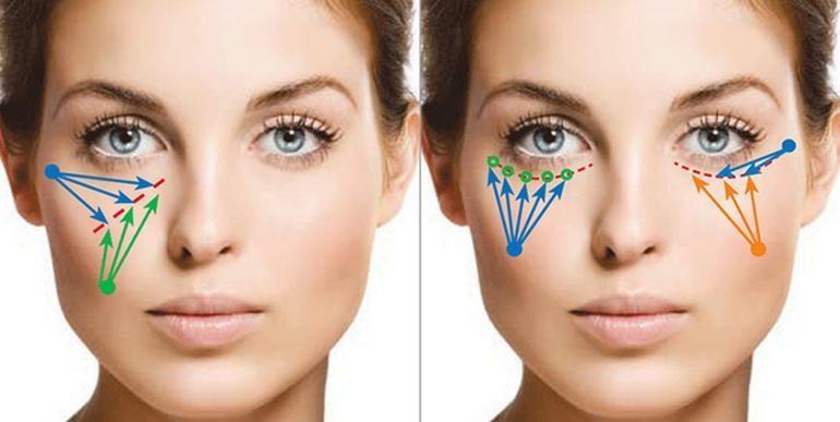 (пластическая операция вокруг глаз; врач-хирург обрабатывает всю зоны обоих век, делая взгляд более открытым и за 1 раз убирая жировые складки и лишние фрагменты кожи).