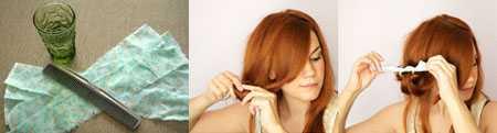 Разделите ваши волосы. Берите локоны и накручивайте их на ткань, пока не доберетесь до корня, оберните концы полоски и завяжите «бантиком».