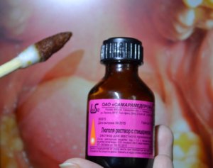 Люголь предназначен для местного применения – им обрабатывают только слизистые гортани и глотки один или два раза в день. Для этого можно воспользоваться ватной палочкой. Окуните ее на несколько секунд в раствор, чтобы вата пропиталась им. После смажьте больную часть горла.