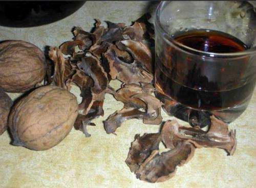 Перепонки отделяем от ядра и тщательно измельчаем. Далее заливаем их водкой и в таком положении настаиваем 3 недели. После чего настой процеживаем. Принимать лекарственное средство необходимо перед едой, по 1 ст. ложке, 2 раза в день.