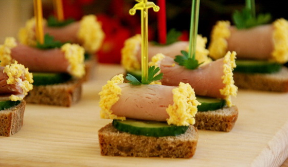 Канапе вообще самая удобная еда как в приготовлении, так и при поедании))