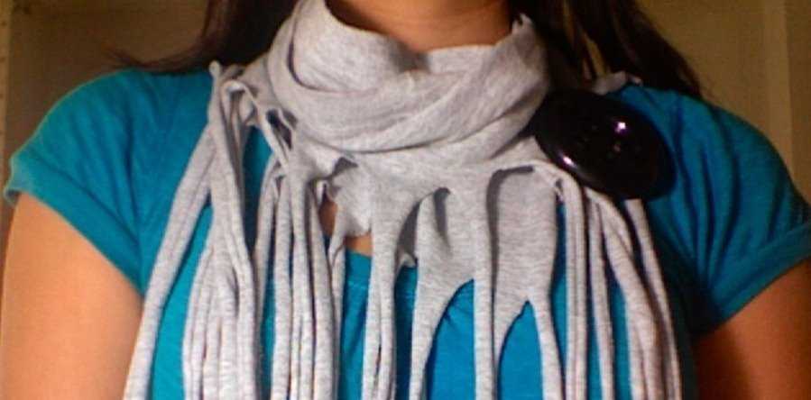 Перевоплощение старой вещи в новую - это не всегда шитье. Иногда достаточно просто иметь фантазию и навыки работы ножницами, чтобы получить новую вещь. Например, такую как этот трикотажный шарф из старой футболки.